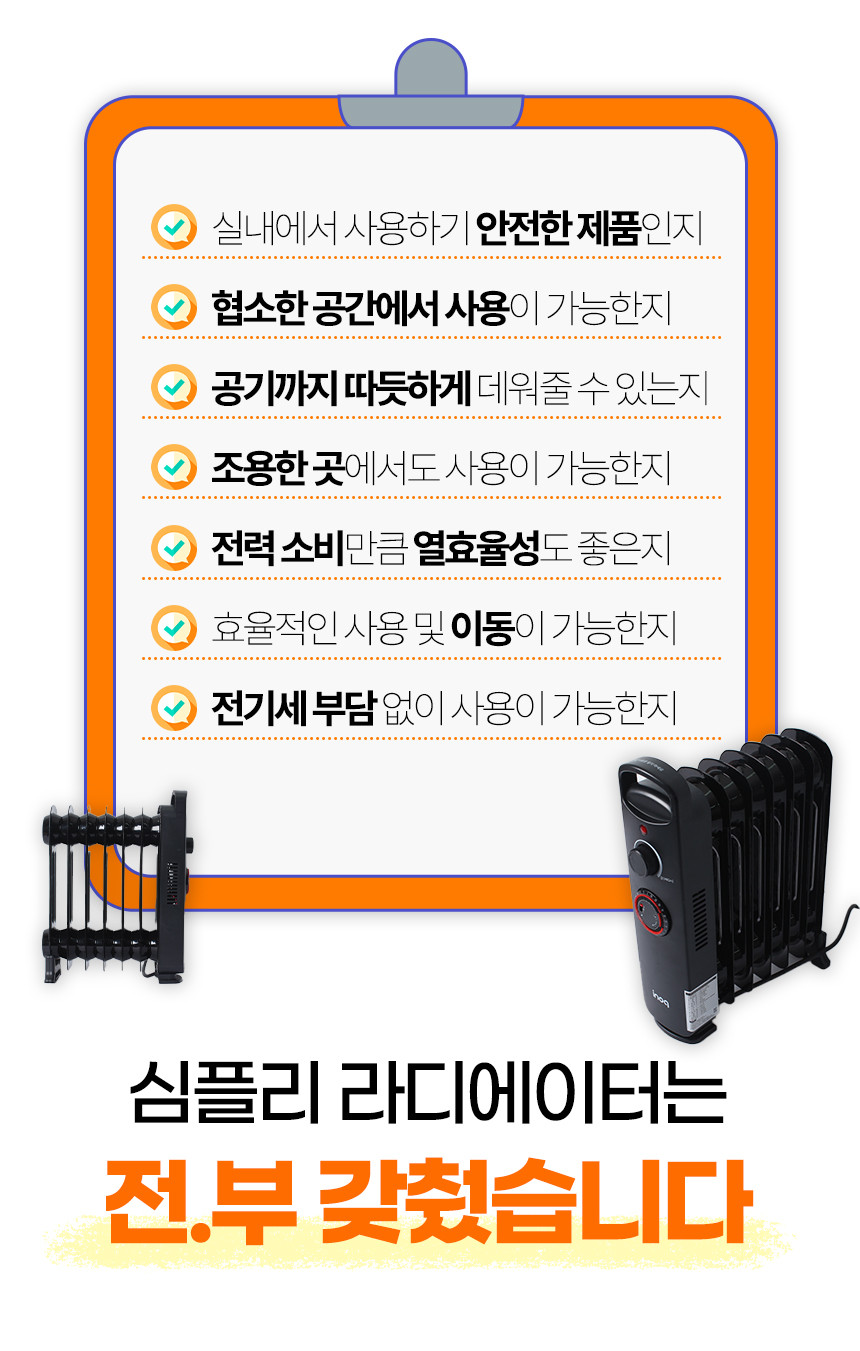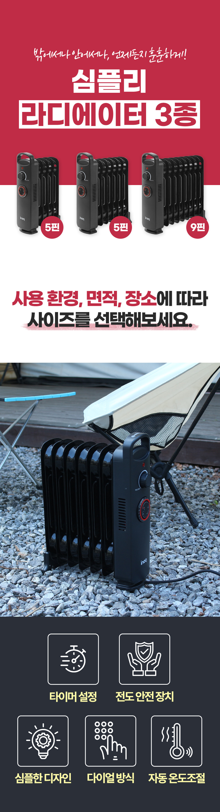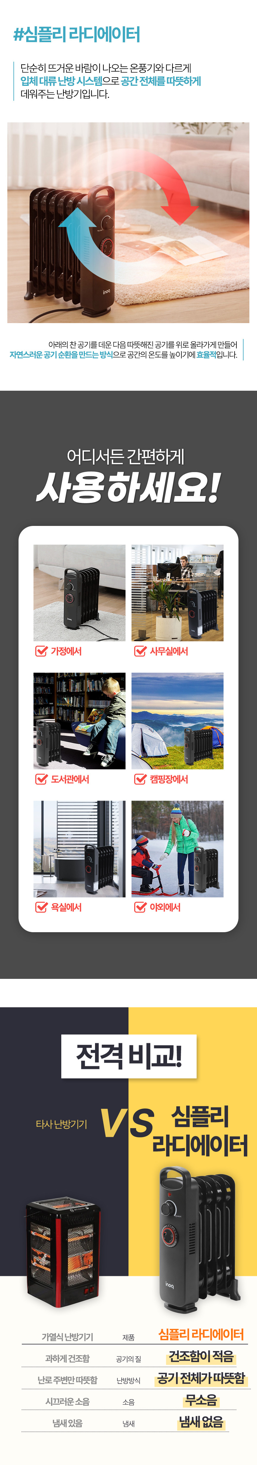 HOME > 계절가전 > 난방기기 > 심플리 미니 라디에이터 캠핑 캠핑용 난방 소형 전기 가정용 욕실 화장실 동파방지 방열기