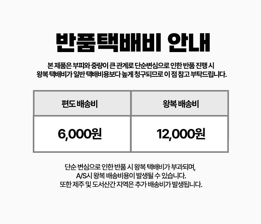 • - 기타 사용자의 과실이 인정되는 경우 교환/반품배송비: 고객변심에 의한 교환 및 반품 시 발생되는 배송비는 고객님 부담입니다.
